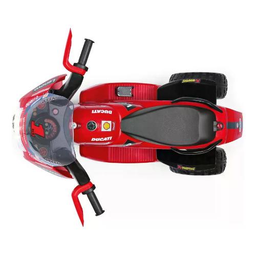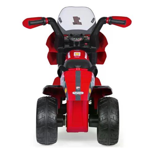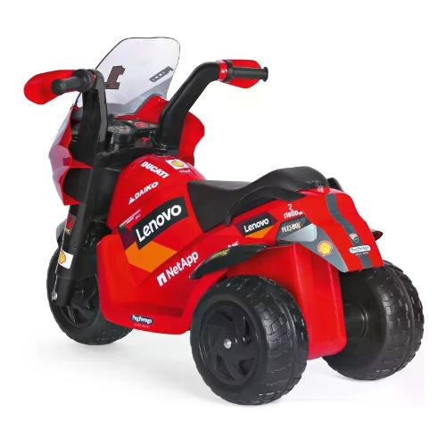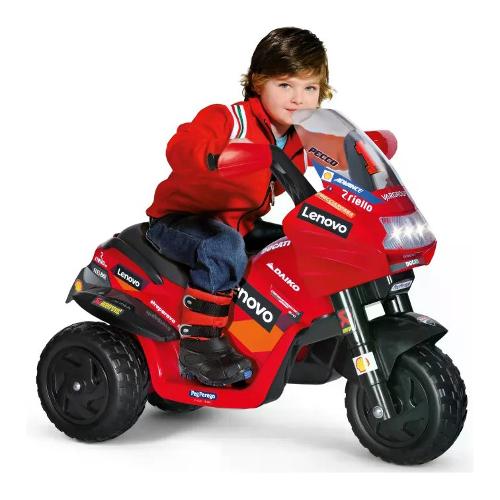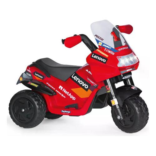 Divertimento in pole position con la moto elettrica Ducati con luci e suoni.Piccoli Ducatisti crescono con la mitica Ducati Desmosedici Evo per bambini. Questo gioiello made in Italy mostra tutta la sua “EVOluzione” con caratteristiche ancora più performanti. Luci, suoni, musiche e clacson per divertirsi già dai 2 anni. La moto elettrica funziona con batteria ricaricabile da 6V