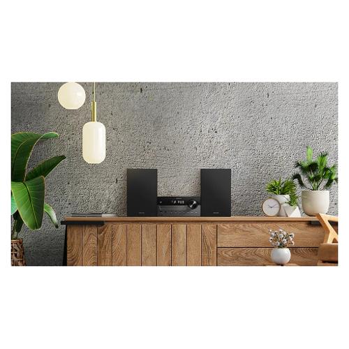 Radio DAB+/FM, CD, streaming e molto altro! Questo micro sistema compatto con altoparlanti da scaffale riempie le stanze più ampie con un suono ricco da ben 80 W ed è compatibile con Auracast, così puoi trasmettere ciò che riproduci agli altoparlanti compatibili in tutta la casa.