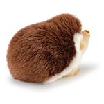 Il riccio Spillo, simpatico e buffo con il nasino all’insù. Il manto è soffice e di colore marrone con due bianchissimi ciuffi bianchi che accompagnano le guance rotonde. Su quattro zampe, pronto per una passeggiata.
