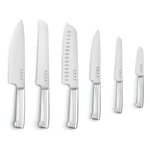 Disegnato con cura per armonizzare l'ambiente della tua cucina, il ceppo di coltelli è la soluzione ideale per gli appassionati di cucina, e non solo. Il ceppo portacoltelli si distingue per il design raffinato, caratterizzato da dettagli in pregiato legno di acacia e corpo in acciaio verniciato a polvere. La base antiscivolo garantisce stabilità e sicurezza durante l'utilizzo. Le lame, realizzate in acciaio inossidabile di alta qualità, garantiscono durata e risultati di taglio ottimali nel tempo. Il design ergonomico dell'impugnatura garantisce una presa comoda e sicura, rendendo ogni utilizzo pratico e preciso. Il set è composto da sei coltelli essenziali, ciascuno progettato per soddisfare esigenze specifiche: un coltello da verdura da 8 cm; un coltello multiuso da 13 cm, versatile e ideale per cibi di varia consistenza; un coltello da carne da 15 cm; un coltello Santoku da 18 cm, ideale per tagliare carne, pesce e verdure; un coltello da pane da 19 cm; e infine un coltello da chef da 19 cm, il tuttofare indispensabile in ogni cucina. Ogni dettaglio del ceppo portacoltelli Smeg è stato studiato per offrire il massimo in termini di prestazioni e di stile, rendendolo un alleato indispensabile per chi vuole cucinare con sicurezza, precisione e un tocco di eleganza.