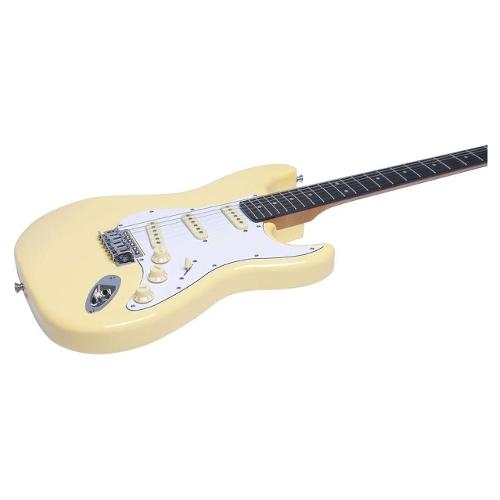 Chitarra elettrica della serie "Tribute 300" ispirata ai celebri modelli strato, in colorazione Cream. Presenta corpo in Pioppo, manico in Acero e tastiera in Laurel, con finitura gloss sia sul corpo, sia sul manico. Monta 3 pickup single-coil, controlli di Volume e due toni e switch blade a 5 vie.