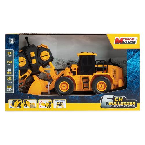 Bulldozer radiocomandato per un utilizzo senza interferenze; come tutta la gamma di giocattoli marchiati mondo la qualità e la cura dei dettagli è ai massimi livelli; auto dalla scocca dura e molto resistente agli urti