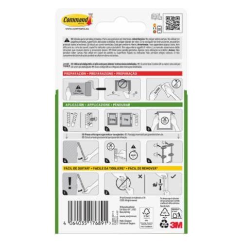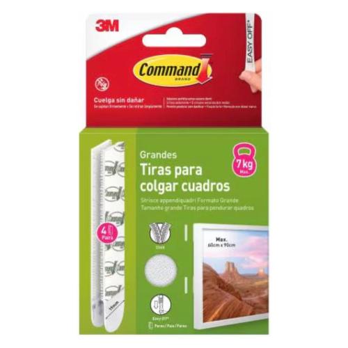 Command™ Strisce appendiquadri ti permettono di decorare come vuoi e quando vuoi, senza danneggiare pareti e superfici. Facili da applicare, non sono più necessari chiodi, viti o attrezzi. Le strisce si attaccano e si riattaccano, consentendo di rimuovere e riposizionare la cornice. Una soluzione di decorazione intelligente che non danneggia le superfici e ti aiuterà a trasformare il tuo spazio senza timori. Queste strisce appendiquadri sono un ottimo articolo per rinnovare la casa: si attaccano a diverse superfici lisce senza lasciare fori, segni o residui appiccicosi. Utilizza queste strisce appendiquadri per appendere cornici, decorazioni per dormitori universitari, lettere in legno, decorazioni per la cameretta dei bambini, calendari o anche per creare una parete-galleria. È sufficiente applicare queste strisce su pareti verniciate, legno rifinito, blocchi di cemento verniciati, laminato, vetro, metallo e piastrelle e potrai goderti le tue decorazioni preferite appese con un'adesione perfetta senza danni. Resistenti e versatili, le nostre strisce appendiquadri sono disponibili in diverse misure e paia per confezione, per adattarsi al meglio alle tue esigenze di arredamento. 2 paia di strisce grandi possono reggere una cornice del peso massimo di 3,5 kg e delle dimensioni massime di 45 cm x 60 cm. 4 paia di strisce grandi possono reggere una cornice del peso massimo di 7 kg e delle dimensioni massime di 60 cm x 90 cm