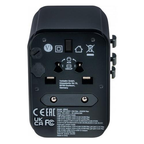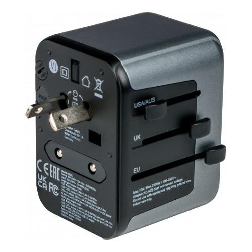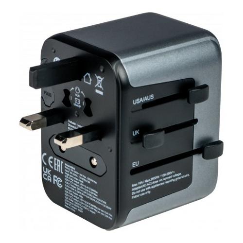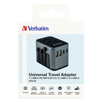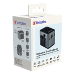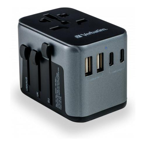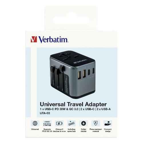 L’Adattatore da Viaggio Universale Verbatim può essere utilizzato in oltre 180 Paesi: portalo ovunque con te e non rimarrai mai senza alimentazione. Questa multi-spina world-to-world ti consentirà di collegarti a qualsiasi rete elettrica locale in tutto il mondo e di ricaricare i tuoi dispositivi energivori, come i laptop e le batterie delle telecamere/macchine fotografiche. Le porte USB-A e USB-C presenti nella parte inferiore consentono di ricaricare tutti i dispositivi USB, tra cui smartphone, altoparlanti Bluetooth, tablet, power bank e Kindle. L'adattatore da Viaggio Universale, compatto e potente, consente a sei dispositivi di essere ricaricati simultaneamente attraverso la presa di corrente CA, le due porte USB-A e le tre porte USB-C.