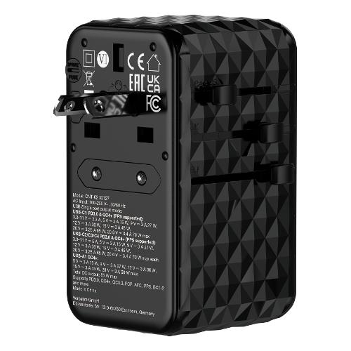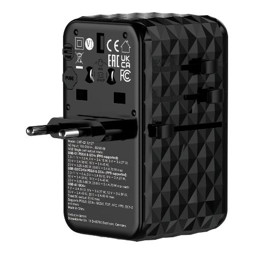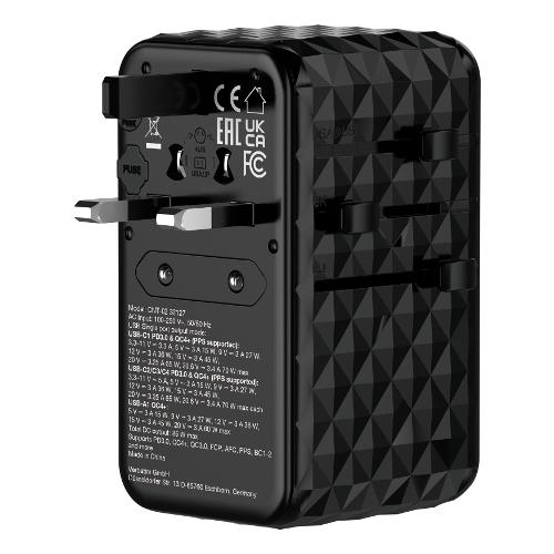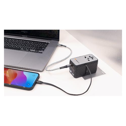 Dimenticatevi di portare con voi cavi extra. L'adattatore da viaggio include un cavo USB-C retrattile compatibile con la maggior parte dei dispositivi USB-C, per essere sempre pronti quando si deve viaggiare leggeri. Le tre porte USB-C aggiuntive supportano Power Delivery 3.0 (con supporto PPS) e Quick Charge 4+, fino a 70W ciascuna, mentre la porta USB-A supporta Quick Charge 4+, fino a 60W. Alloggiato in un accattivante modello nero 3D, l'adattatore universale è prodotto con materiale in policarbonato ignifugo di alta qualità ed è certificato CE, UKCA, FCC e ROHS.