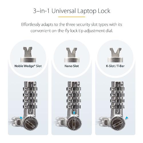 Proteggete un computer portatile, una docking station o altre periferiche con questo lucchetto per cavi a combinazione seriale 3in1