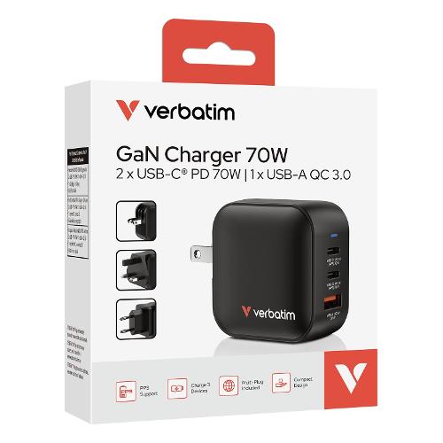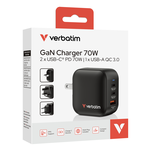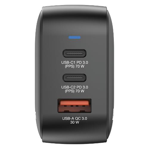 Caricabatterie USB Type-A, USB Type-C 70W GaN Triple Black 32229