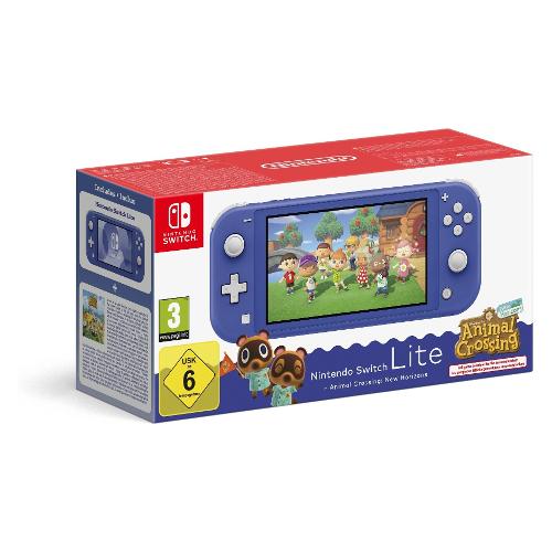 Scopri il bundle Nintendo Switch Lite color blu. Il pack include un codice download per installare il gioco Animal Crossing: New Horizons.