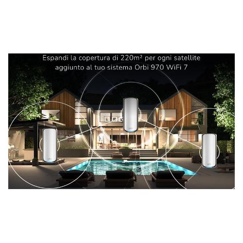 Espandere il sistema Orbi è semplice come premere un pulsante. Aggiungi facilmente 220 mq di copertura WiFi 7 per il tuo sistema o router Mesh Orbi serie 970 esistente.