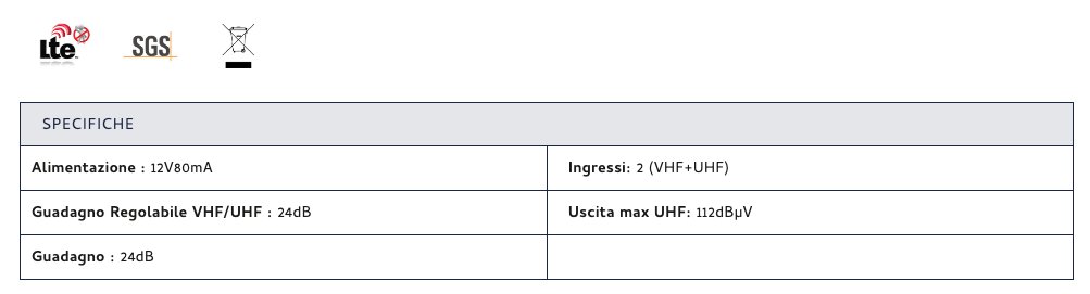 Amplificatore da palo 2 ingressi (VHF/UHF)