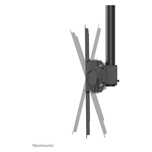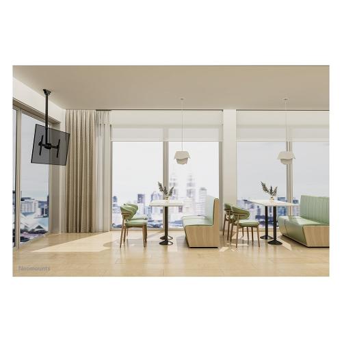 Neomounts CL35-400BL16L è un supporto da soffitto full motion per schermi piatti fino a 70". L'esclusiva tecnologia di inclinazione (25°) e perno (360°) consente al supporto di cambiare l'angolo di visione ottimale. È disponibile la regolazione del livello per un'installazione perfetta. Il supporto a soffitto può essere facilmente regolato in altezza da 106 a 156 cm.