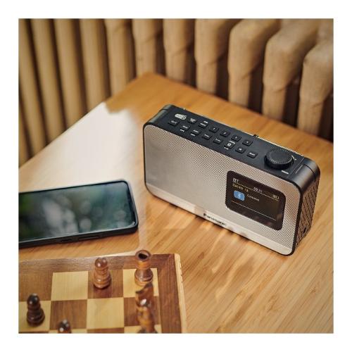 Con la nostra radio portatile RF-D15 ottieni più di ciò che suggerisce il suo design compatto. Con il grande display a colori di facile lettura e la possibilità di scegliere tra alimentazione elettrica o a batteria (non inclusa), è davvero pratica. Scegli la stazione preferita in un attimo con l'opzione DAB+ o FM e quattro pulsanti di preselezione della stazione radio. Puoi anche connetterti in modalità wireless dal dispositivo mobile via Bluetooth, per ascoltare meglio podcast e playlist.