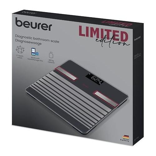 La bilancia diagnostica BF 451 di Beurer combina un'analisi corporea precisa e un design elegante con una struttura a linee opacizzata. Peso, massa grassa, IMC, percentuale di acqua e massa muscolare vengono visualizzati direttamente sul display: ulteriori dati possono essere trasmessi in modo rapido e semplice all'app "beurer HealthManager Pro" tramite Bluetooth.