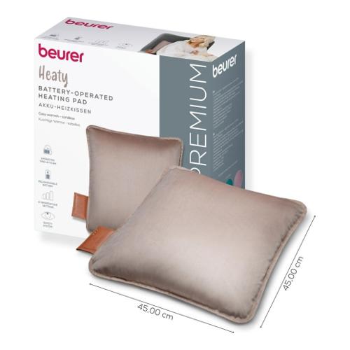 Il termoforo HK 77 Heaty di Beurer assicura un benefico calore a casa, in ufficio o in viaggio. La potente batteria ricaricabile agli ioni di litio consente un utilizzo senza fili fino a 8 ore. Con tre livelli di temperatura selezionabili, l'intensità del calore può essere adattata in modo personalizzato. Rivestimento cuscino: lavabile in lavatrice a 30 °C