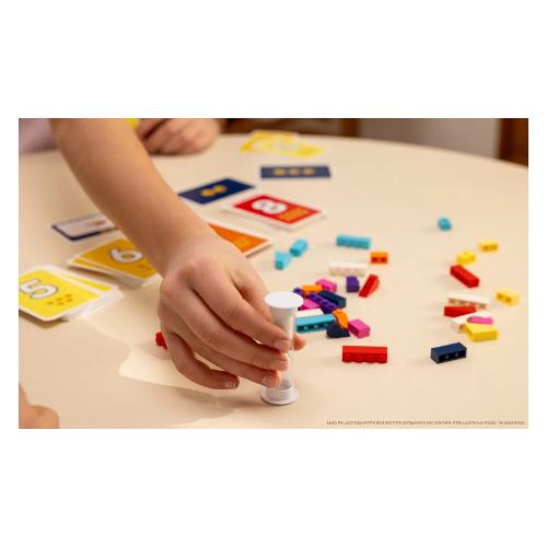 Meno di quello che sembra! E se non bastasse, entrano in gioco le carte sfida, che introducono delle limitazioni come costruire a occhi chiusi o usando una sola mano o non poter usare i colori nel dare indicazioni etc. Il gioco si fa duro ma ancora più divertente! La confezione include: 48 Mattoncini LEGO®, 92 Carte Figura, 20 Carte Sfida, 1 Clessidra (da 30 secondi), 1 Regolamento