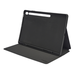 Custodia ecologica per Samsung Galaxy Tab S10 FE+, in PU effetto nylon, realizzata in plastica riciclata. L'interno è rivestito in un morbido materiale antigraffio e la scocca posteriore interna, dotata di apertura per la fotocamera, è realizzata in morbido TPU protettivo. La cover anteriore si trasforma anche in un pratico supporto, ideale per scrivere e leggere. È presente un vano esterno per la S Pen.