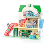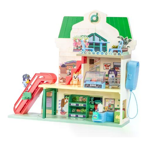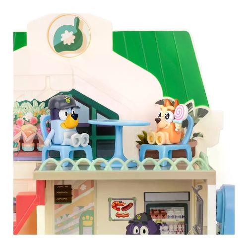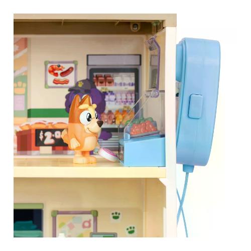 Fai la spesa al supermercato con Bluey e Bingo e mangia al ristorante dell'ultimo piano un perfetto pranzo di famiglia! Il playset include una funzione di interfono con 24 frasi per interagire con i personaggi e rendere il gioco ancora più divertente!