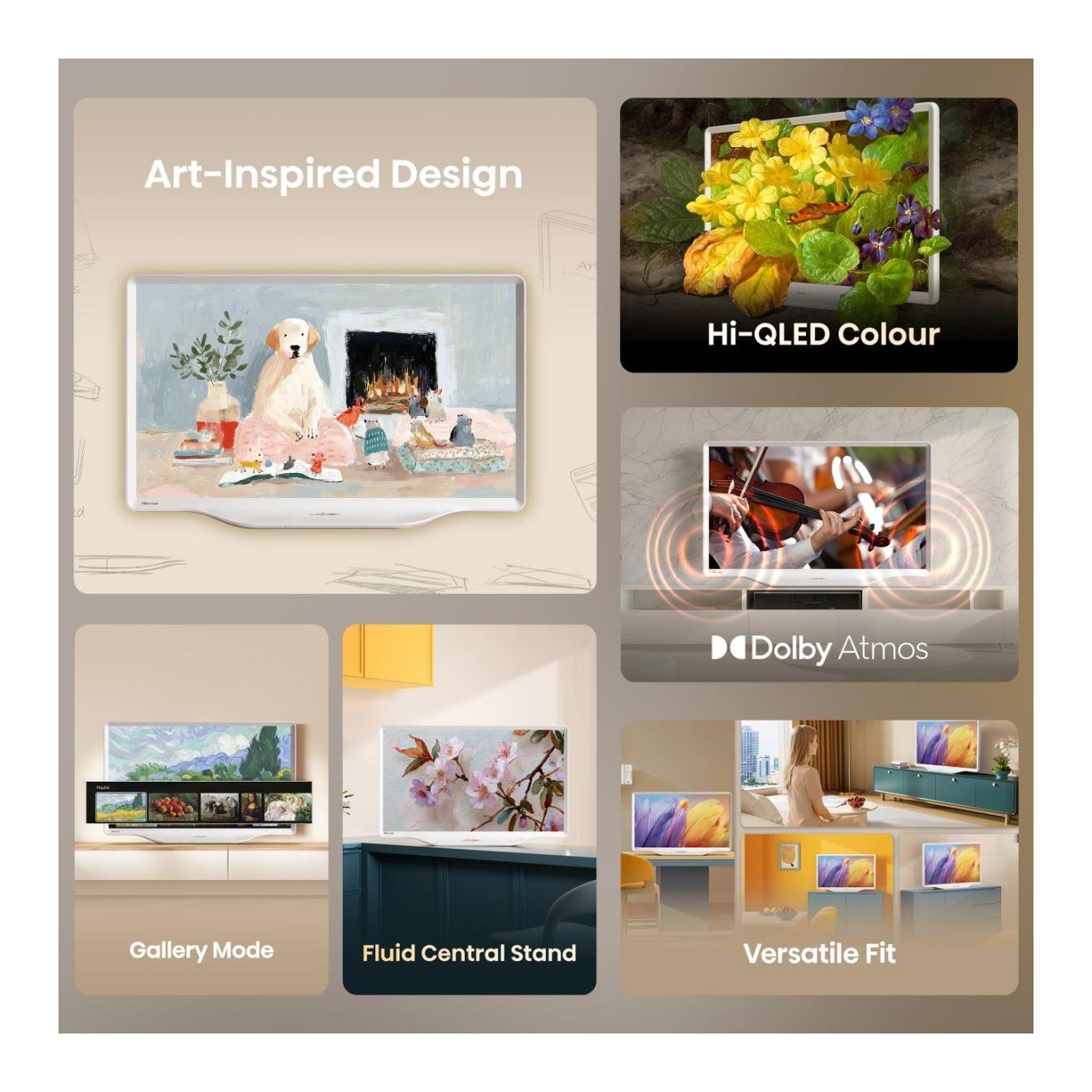 A differenza dei tradizionali TV neri ingombranti, questo modello adotta una finitura bianca Morandi con curve morbide, conferendo un tocco artistico al tuo spazio. Ogni dettaglio è curato nei minimi dettagli, per un perfetto equilibrio tra stile e praticità.