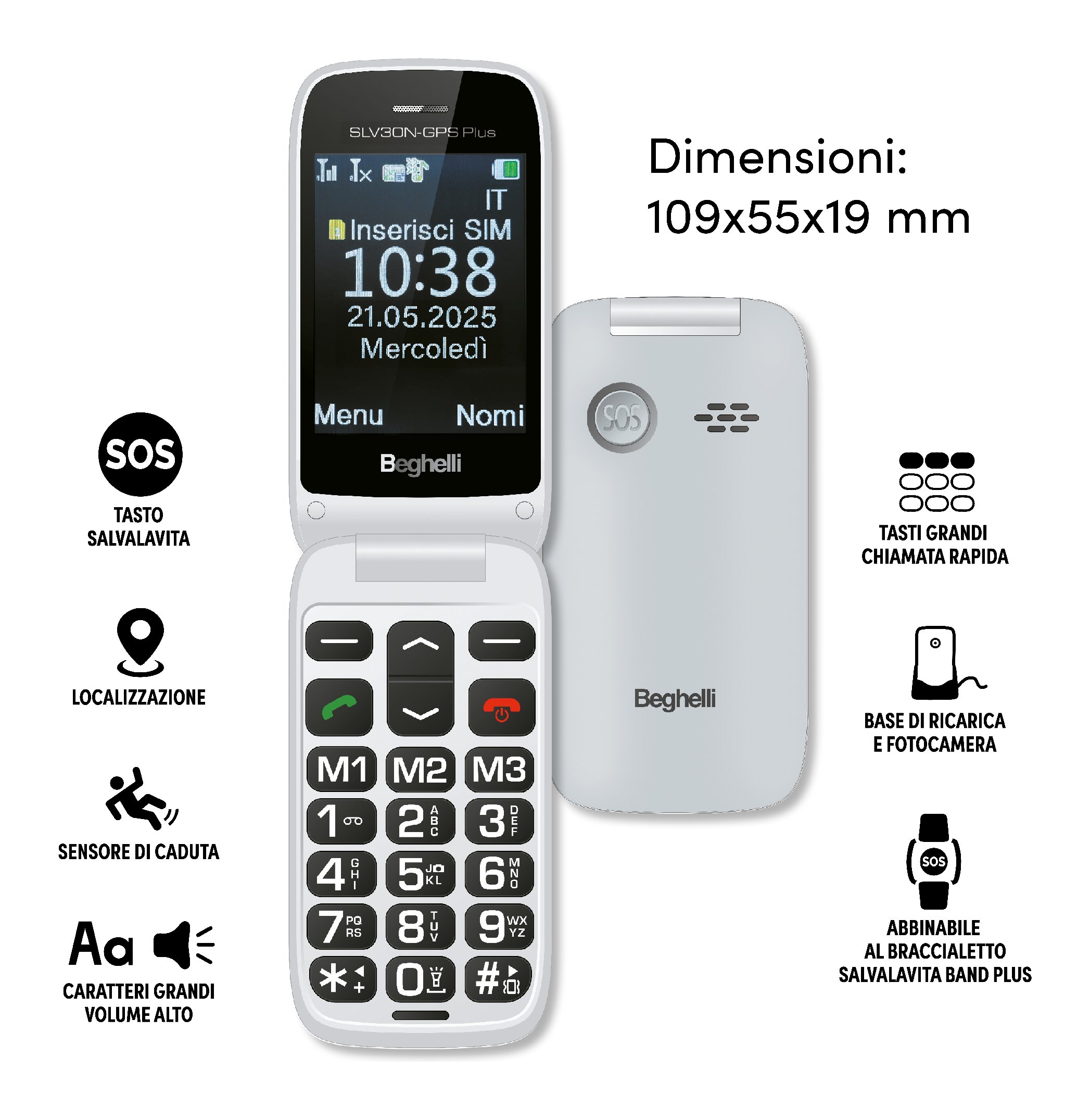 Cellulare GSM con tasto di chiamata rapida di soccorso e localizzazione GPS.
