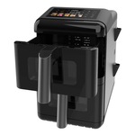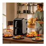 Cucina di più, occupa meno spazio. 2 cestelli sovrapposti da 6 L che consentono di cucinare due piatti contemporaneamente in modo diverso, occupando meno spazio sul piano di lavoro grazie al design verticale.