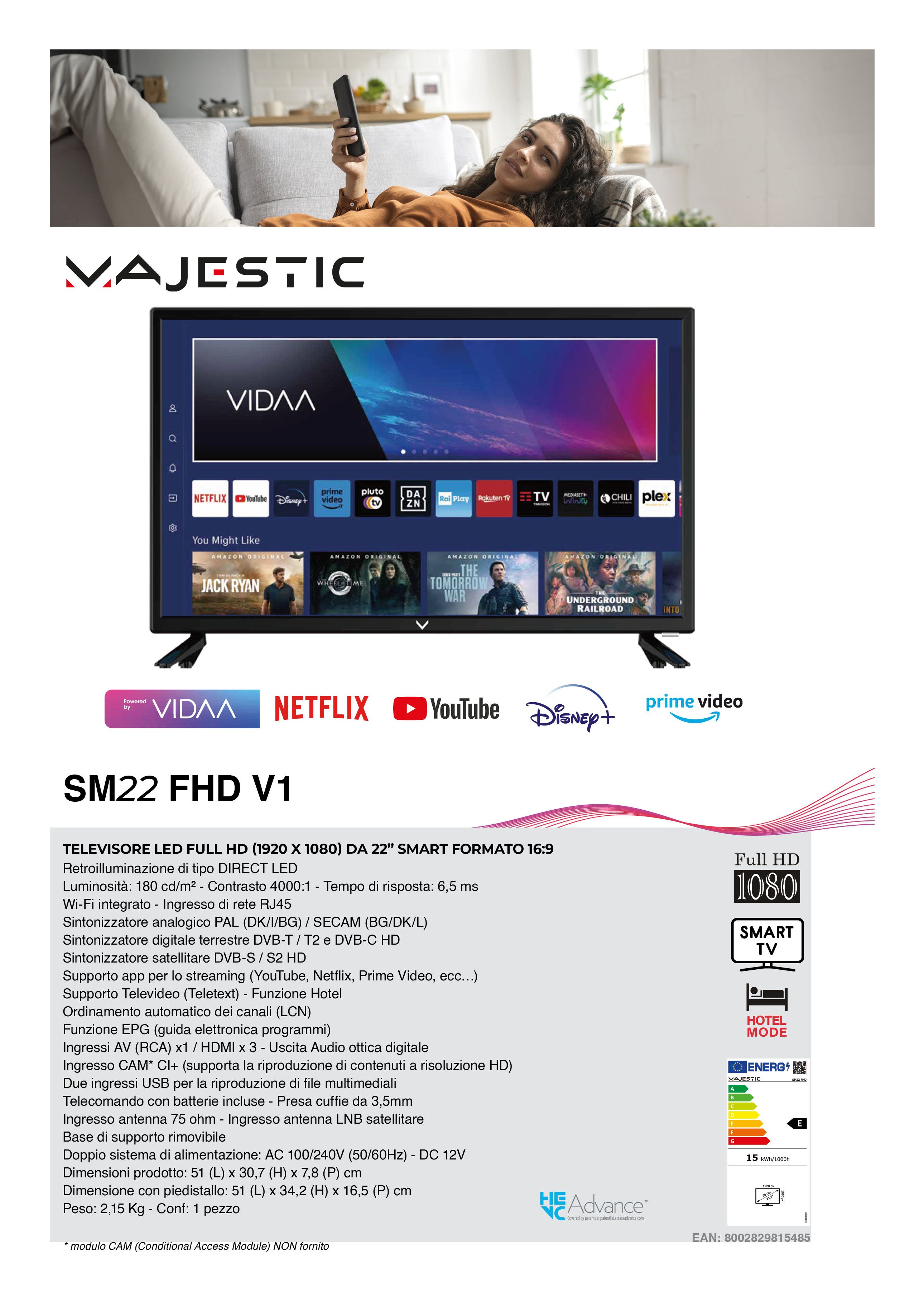Tv 22" ( LED ) Vidaa U SM22 FHD V1 Black 113522