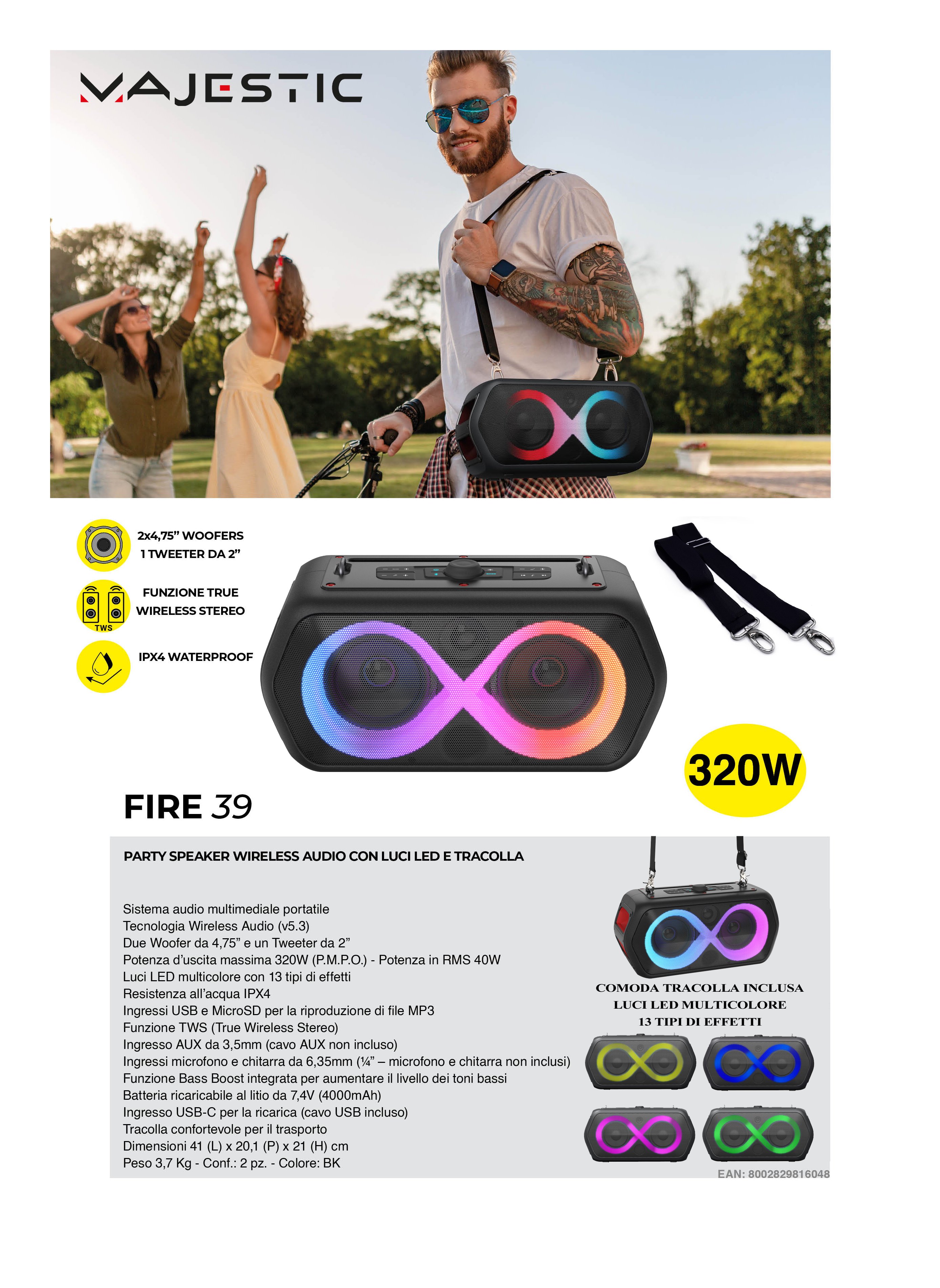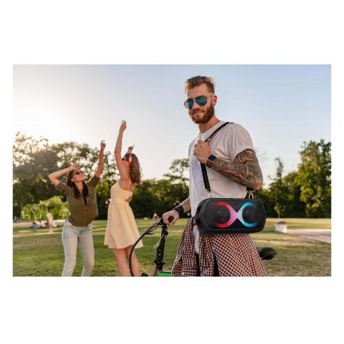 Il MAJESTIC FIRE 39 è il party speaker perfetto per chi ama la musica in movimento! Grazie alla tracolla inclusa, è facile da trasportare ovunque, mentre la batteria ricaricabile garantisce ore di divertimento senza interruzioni.