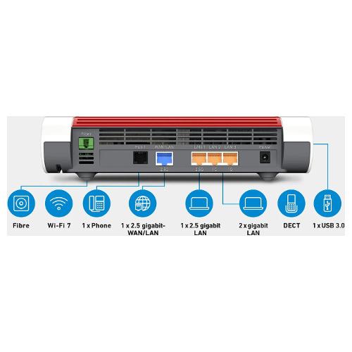 Navigazione a prova di futuro con la velocità della fibra ottica e il Wi-Fi 7 ultraveloce. Il FRITZ!Box 5690 supporta AON e GPON , gli standard per la fibra ottica più diffusi in Europa. Puoi collegarlo direttamente o utilizzarlo in modo flessibile tramite un modem in fibra ottica (ONT) . La configurazione è semplice e veloce tramite app (o browser).