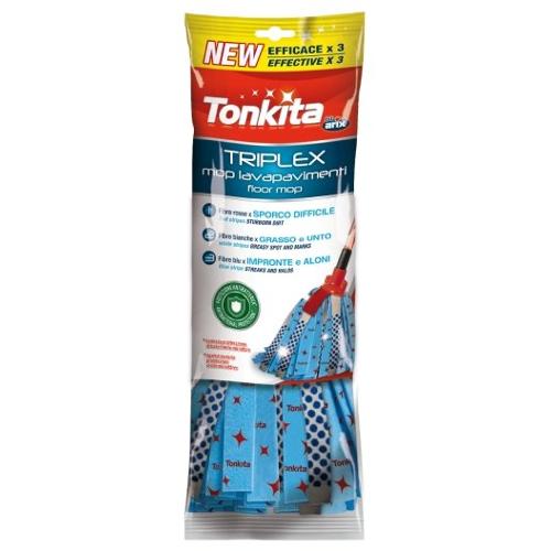 Fiocco lavapavimenti extra assorbente tre volte efficace grazie all’azione specifica di 3 fibre pulenti di diverso colore: