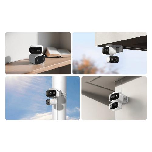 Le due telecamere lavorano insieme in modo dinamico per garantire che non ti perda mai un momento: quando l'obiettivo fisso rileva eventi come movimento, persone e animali domestici, l'obiettivo panoramico/inclinabile ruota automaticamente per mettere a fuoco e seguire l'oggetto in movimento.