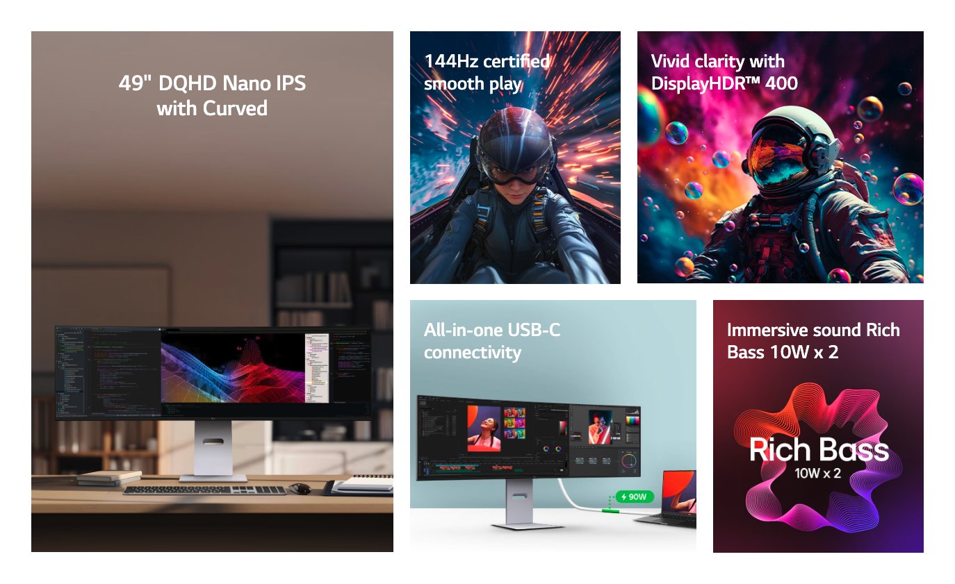 Monitor 49" ( IPS 5120x1440 DQHD 144Hz ) ULTRAWIDE Curvo White 49U950A W