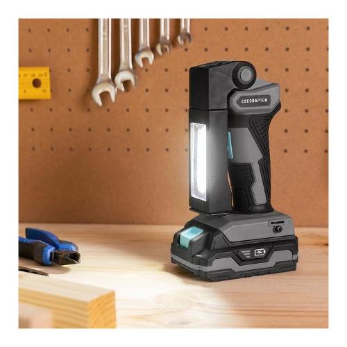 Alte prestazioni on-the-go. Luce di lavoro senza fili con batteria ricaricabile agli ioni di litio da 20 V 2000 mAh, intercambiabile con gli utensili della serie CecoRaptor Perfect da 20 V.