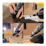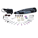 Multiutensile rotante ad alte prestazioni on-the-go. Ottieni risultati perfetti ovunque grazie a una velocità fino a 25.000 giri al minuto e a una batteria ricaricabile agli ioni di litio da 12 V, 1500 mAh con un'autonomia fino a 60 minuti. Grazie alla sua grande versatilità, è possibile eseguire lavori di levigatura, taglio, incisione e lucidatura con una finitura professionale. Funzioni multiple che permettono di lavorare su legno, metallo, plastica, pelle, ceramica e vetro. Lo strumento è progettato per lavorare in totale comodità al fine di ottenere risultati precisi. Il manico ergonomico e l'impugnatura morbida antiscivolo offrono una presa perfetta, molto piacevole al tatto e facile da usare. Ottieni risultati eccellenti con finiture professionali nei tuoi lavori di bricolage in modo semplice. Con questo utensile e il suo set completo di accessori sarai in grado di realizzare tutti i tuoi progetti di bricolage più precisi a casa. Ha un kit di 60 accessori con i quali si può tagliare, levigare, lucidare, incidere, fresare, disossidare e anche forare. Realizza lavori di bricolage a casa o in officina, artigianato, restauro di mobili, gioielli, bigiotteria e qualsiasi altra cosa tu possa immaginare.