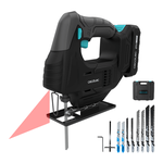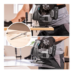 Massima precisione e illuminazione. Il seghetto alternativo è dotato di un laser integrato per guidare il taglio e di una luce LED per illuminare l'area di taglio.