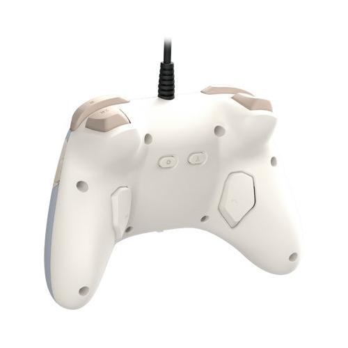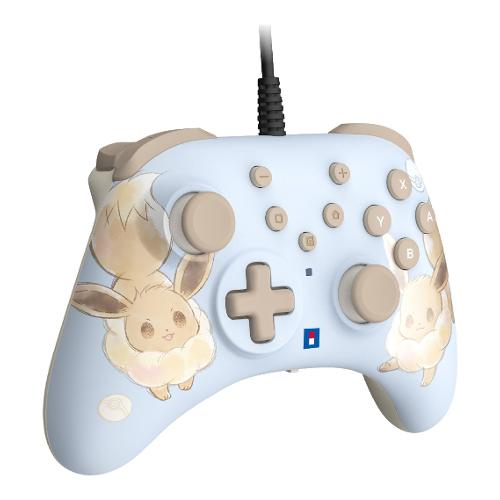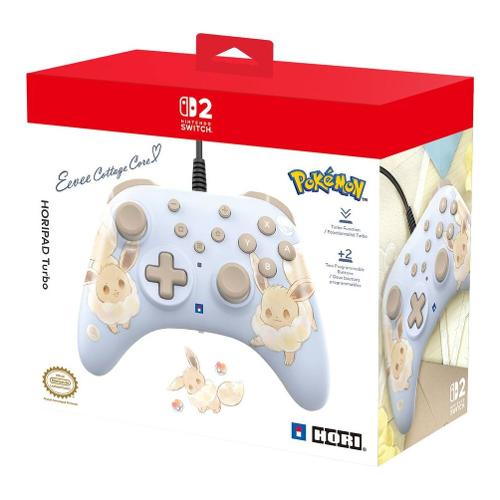 La funzionalità cablata offre una risposta fulminea, mentre l'impugnatura ergonomica e il profilo leggero garantiscono un comfort continuo. L'HORIPAD Turbo presenta un'adorabile grafica di Eevee, ispirata alla serie Pokemon.