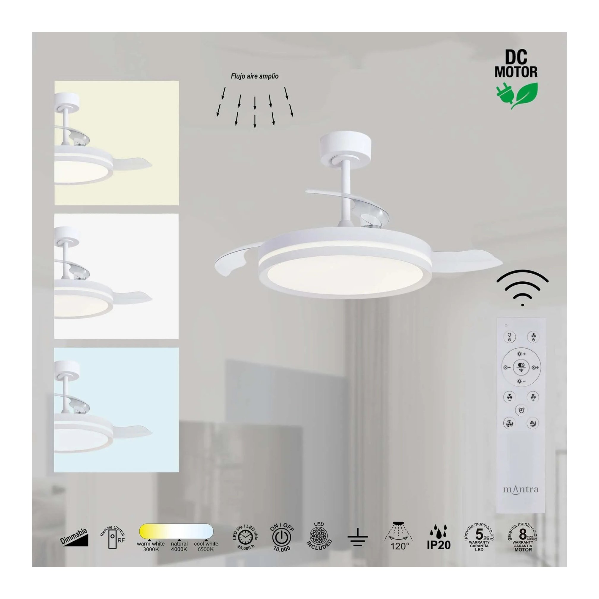 La plafoniera ventilatore LED unisce illuminazione potente e ventilazione efficiente in un`unica soluzione dal design moderno. Ideale per ambienti contemporanei, garantisce comfort tutto l`anno grazie al motore DC silenzioso e alla luce LED regolabile, adattandosi perfettamente a soggiorni, camere da letto e spazi fino a medie dimensioni.