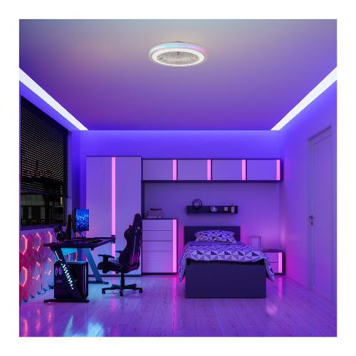 Il ventilatore da soffitto Gamer è la scelta perfetta per chi desidera unire tecnologia, design e funzionalità in un unico prodotto. Grazie alla sua luce RGB e alla modalità estiva e invernale è l’ideale per rinfrescare e illuminare con stile ogni ambiente moderno.