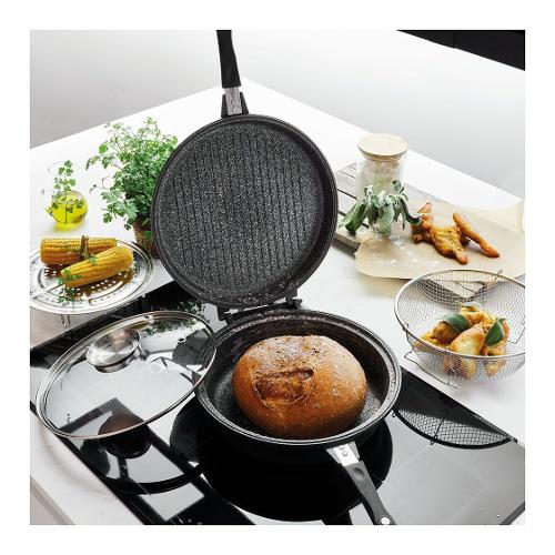 Il fornetto rotondo della linea Sphera è il fornetto rotondo Tognana fondo 10 in 1 in formato extra-large, con doppia induzione. Con i suoi accessori diventa un must have per la tua cucina di tutti i giorni, e grazie alla profondità di una delle due padelle che lo compongono permette di gestire moltissime preparazioni e di dare sfogo a tutta la tua creatività. Il corpo è in alluminio pressofuso con uno strato interno in microsfere di porcellana che garantisce un'antiaderenza superiore; il fondo ad alto spessore è in acciaio inox thermoradiante antideformazione che consente performance eccellenti ad alte temperature su tutti i piani di cottura, compresa l'induzione. Nickel Free e Pfoa Free, il fornetto rotondo XL di Tognana permette una cucina sana e salutare, ed è dotato di: un cestello per friggere, una piastra per cottura a vapore in acciaio inox, un coperchio in vetro temperato con pomolo "Aroma" che mantiene inalterati gusto e sapore, e un termometro per controllare la temperatura degli alimenti