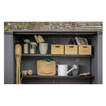 Il porta attrezzi da esterno Vertical unisce robustezza e praticità. Con 1400L di capacità, permette di riporre comodamente attrezzi, biciclette e altro. Le cerniere in metallo con apertura a 110° facilitano l’accesso, mentre le due mensole (incluse) e il pavimento con rampa rendono l’organizzazione ancora più semplice. La chiusura lucchettabile garantisce la sicurezza, e la sua resistenza ai raggi UV lo rende perfetto per ogni stagione. Facile da assemblare, è la scelta ideale per ottimizzare e proteggere il tuo spazio esterno.