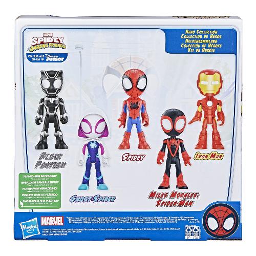 È il momento di Spidey! Questo pacchetto Hero Collection include le figure di 5 personaggi preferiti di Spidey e del suo super team: Spidey, Miles Morales: Spider-Man, Ghost-Spider, Iron Man e Black Panther. Puoi muovere la testa e le braccia di queste figure da 10 cm per metterle in posa in modo divertente e ricreare le tue scene preferite della serie animata Marvel per bambini in età prescolare su Disney Junior. I giocattoli di Spidey e del suo super team sono un fantastico regalo di Natale o di compleanno per chiunque ami le avventure dei supereroi.