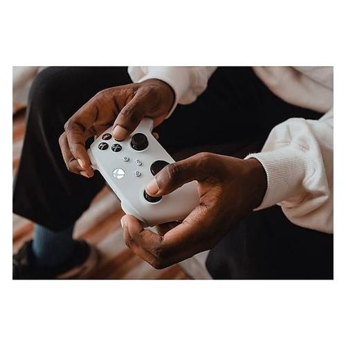 Scopri il design modernizzato del controller wireless Xbox Robot White, con le sue superfici testurizzate e la geometria raffinata, per un comfort di gioco migliorato. Alimentato da 2 batterie Stilo AA.