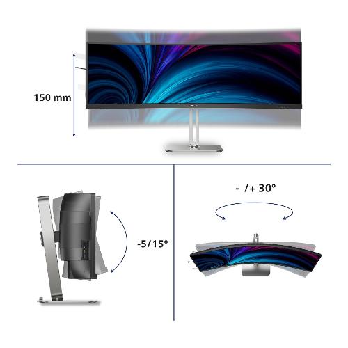 Questo monitor per uso aziendale da 49 pollici è progettato per garantire la massima efficienza. Lo schermo SuperWide, lo switch KVM intelligente e la connettività USB-C facilitano il lavoro in team e il passaggio da un'attività all'altra.