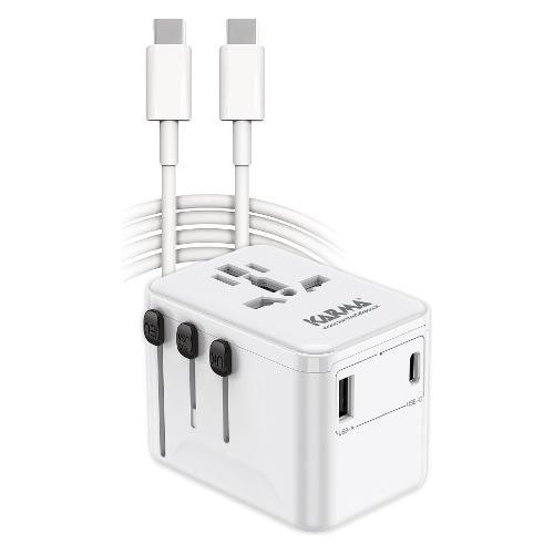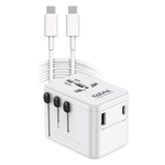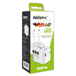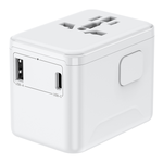 Adattatore da viaggio dotato di una multipresa e di vari tipi di spina che si adattano alle prese di diversi paesi. Grazie a un dispositivo di sicurezza solo la spina utilizzata viene alimentata. Presenta inoltre una porta USB-A e una porta Type-C per l’alimentazione o la ricarica di dispositivi come telefoni o tablet. Nella confezione è incluso un cavo Type-C da 1,5mt