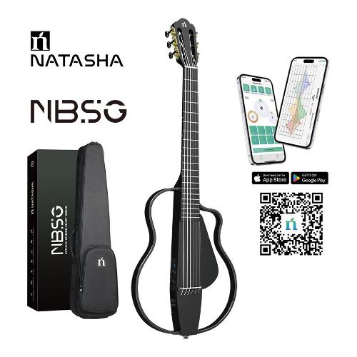 La silent guitar Natasha NBSG Nylon è una chitarra classica silent con corde in nylon dotata di un potente sistema di preamplificazione intelligente. Il sistema può essere collegato a una app dedicata che offre una vasta gamma di potenti funzionalità aggiuntive. Il sistema è alimentato da una batteria al litio che garantisce una lunga durata. Sono presenti la port Jack 6,3mm e Jack 3,5 mm.