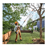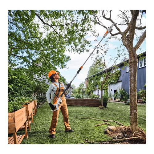 L'asta telescopica a estensione continua consente lunghezze dell'utensile da 190 cm a 280 cm e, quando completamente estesa, è adatta ad altezze di lavoro fino a circa 4,5 m. Con un'autonomia fino a 140 tagli per carica della batteria (AS 2), l'HTA 30 è sufficientemente potente per le tipiche attività di manutenzione.