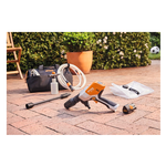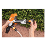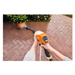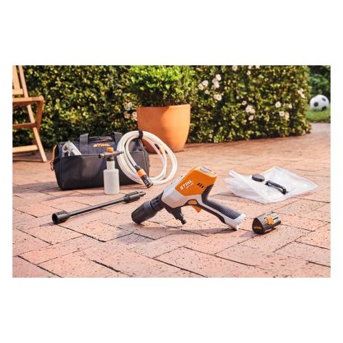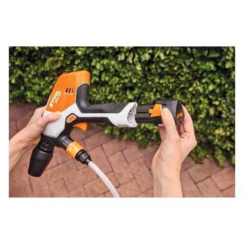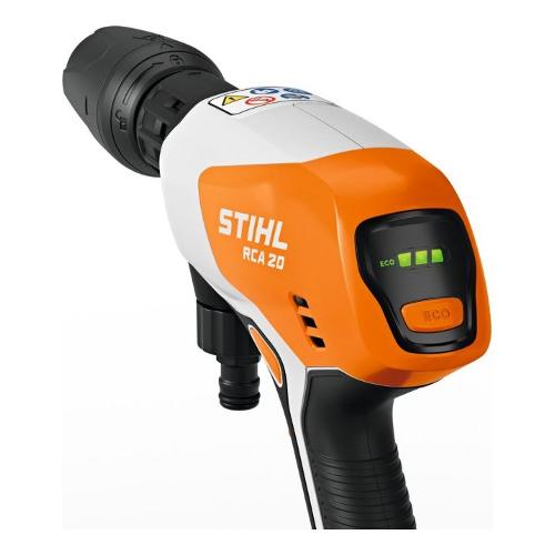 L'idropulitrice a batteria STIHL RCA 20 è ideale per piccoli lavori di pulizia intorno alla casa e per l'uso in movimento. Funziona con batterie agli ioni di litio del sistema STIHL AS. STIHL RCA 20 può essere utilizzata indipendentemente dall'alimentazione elettrica e dai collegamenti idrici. Se non c'è un collegamento idrico nelle vicinanze, è possibile utilizzare l'acqua, ad esempio, da una cisterna tramite il tubo di aspirazione o utilizzare il contenitore per il trasporto dell'acqua.