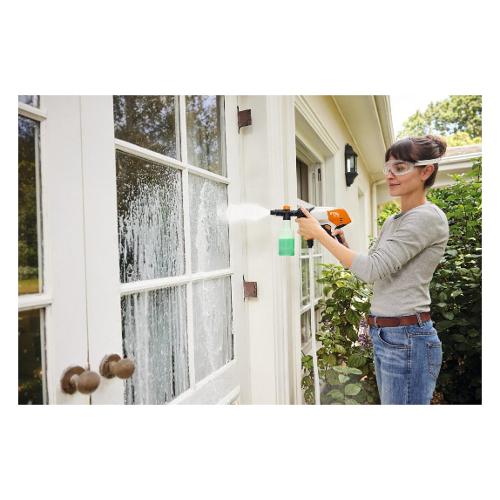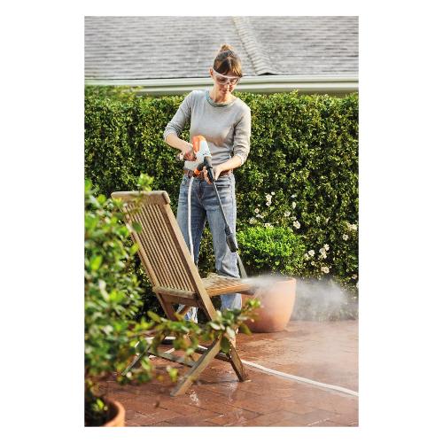Grazie alla pressione massima di 24 bar e al peso ridotto di soli 1,3 kg, è possibile utilizzare RCA 20 per pulire mobili da giardino, biciclette, griglie o attrezzature da gioco con particolare flessibilità - anche con una mano se necessario. L'ugello 4-in-1 consente un rapido cambio tra diverse applicazioni.