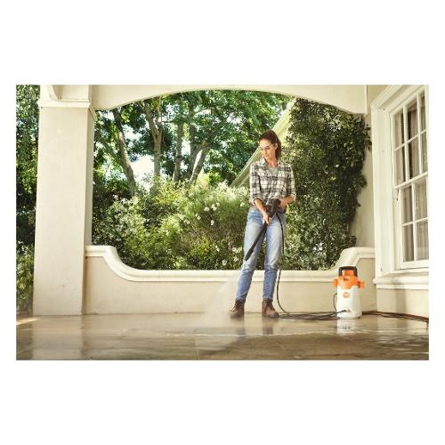 L'idropulitrice elettrica STIHL RE 80 X è un dispositivo leggero per principianti, che puoi trasportare comodamente al luogo di utilizzo grazie alla costruzione compatta e al manico robusto. Puoi eseguire rapidamente ed efficacemente lavori di pulizia intorno alla casa con STIHL RE 80 X. Questi includono, ad esempio, la pulizia di terrazze e scale o la pulizia dei mobili da giardino. Grazie al suo peso ridotto, STIHL RE 80 X è particolarmente maneggevole.