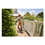 L'impugnatura ergonomica ottimizzata con superfici soft-grip garantisce un utilizzo sicuro e confortevole. L'impugnatura ad anello e l'asta telescopica quadrata regolabile senza attrezzi facilitano la maneggevolezza, anche in spazi ristretti. La tracolla inclusa può essere agganciata e sganciata rapidamente dall'anello di sospensione.