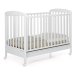 Il lettino in legno Mary di Foppapedretti ha una sponda regolabile a due altezze, per facilitare il riordino del lettino. Anche la rete a doghe è regolabile a due altezze, per consentire un pratico uso anche quando il bimbo è neonato. Il lettino ha un ampio cassetto inferiore, suddiviso in due scomparti, e ruote con sistema frenante, per facilitare gli spostamenti.