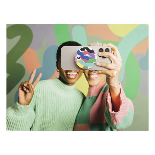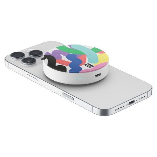 MAG VIBE è il power bank MagSafe da 3000 mAh con design compatto e rotondo, decorato con grafiche colorate e vivaci. Si aggancia magneticamente all’iPhone per una ricarica wireless da 5W, garantendo fino a 22 ore di autonomia extra. Dotato di porta USB-C da 12W e indicatori LED, è perfetto per chi cerca un accessorio pratico e alla moda.